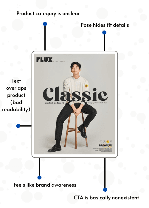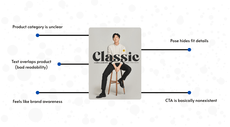 Big โClassicโ text | Face | Random icons | Brand name | Tiny product details